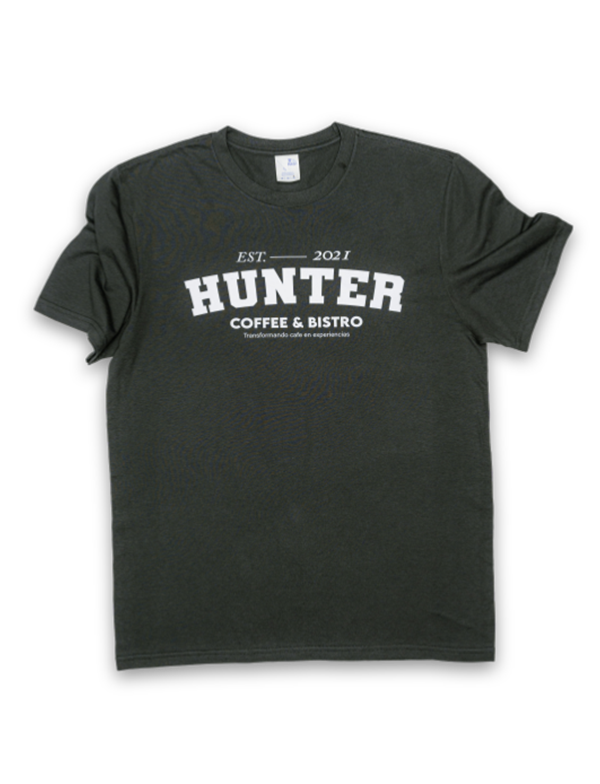 Nuestras playeras de manga corta no solo son cómodas, también son una declaración de tu pasión por el buen café. Hechas con algodón 100% suave y disponibles en varios colores, llevan el logo de Hunter, para que siempre tengas el espíritu de HUNTER a tu lado.